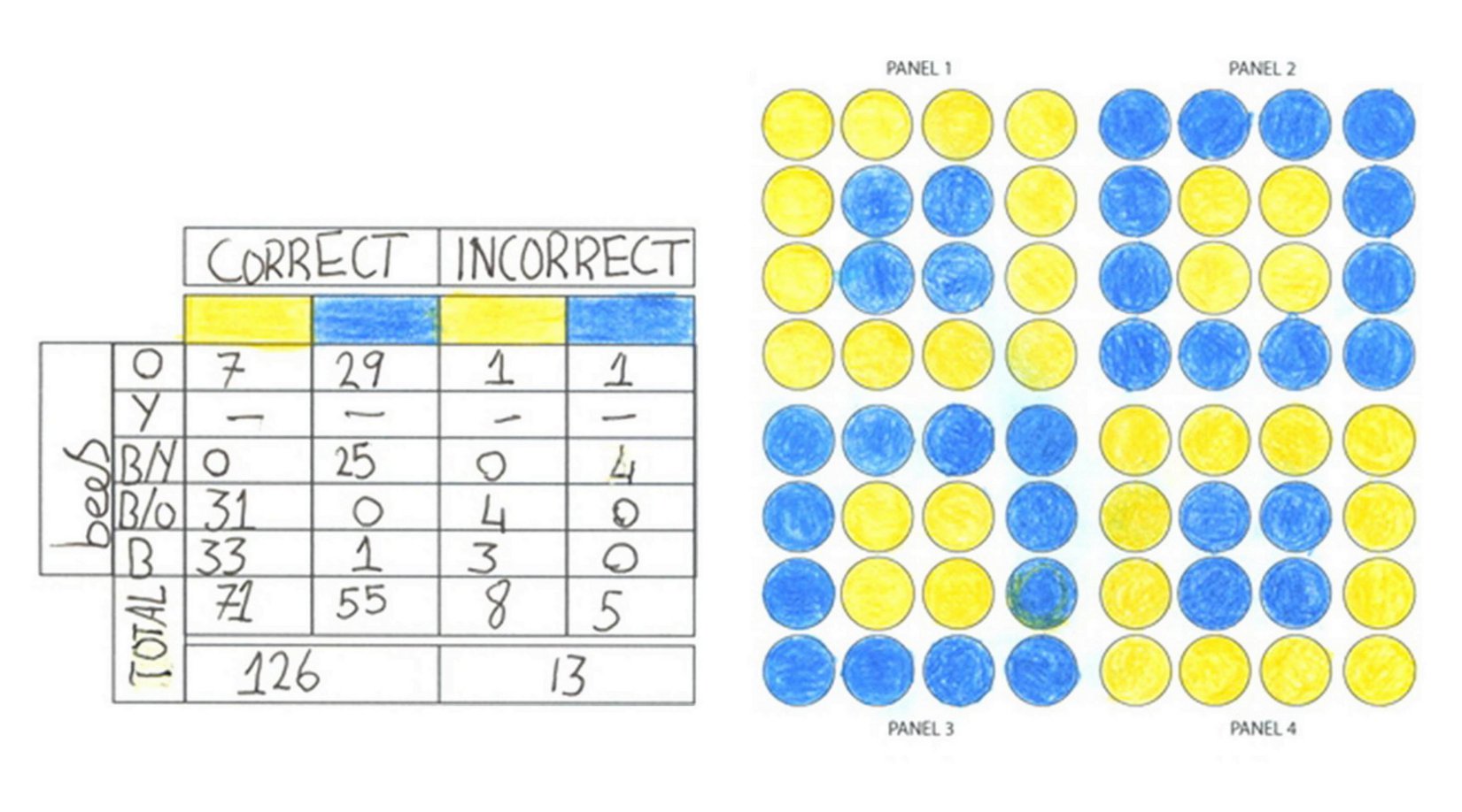 כדי לבחון את הדבורים חזרו הילדים על הניסוי אך הפעם ללא כל מי סוכר או מי מלח, כך שהדבורים יכלו להסתמך רק על מה שלמדו. הילדים ספרו כמה פעמים ולאן עפה כל דבורה וכתבו את התוצאה בטבלה. התוצאות הראו כי ב-90.6% מהמקרים פתרו הדבורים את החידה שהציבו להם הילדים ובחרו בפרחים הנכונים, כלומר חיפשו מי סוכר במרכז כל ריבוע. אם כי חלק מהדבורים העדיפו את הפרחים הכחולים, כאשר אלה היו במרכז, יותר מאשר הפרחים הצהובים, ולהפך.