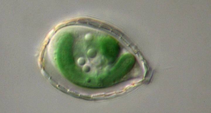 האמבה (איקריוט חד תאי) בשם פוֹלינלה כרומטופורה (Paulinella chromatophora) "רכשה" לאחרונה (בקנה מידה אבולוציוני) חיידק כחולי משלה שמתפקד כמו כלורופלסט.