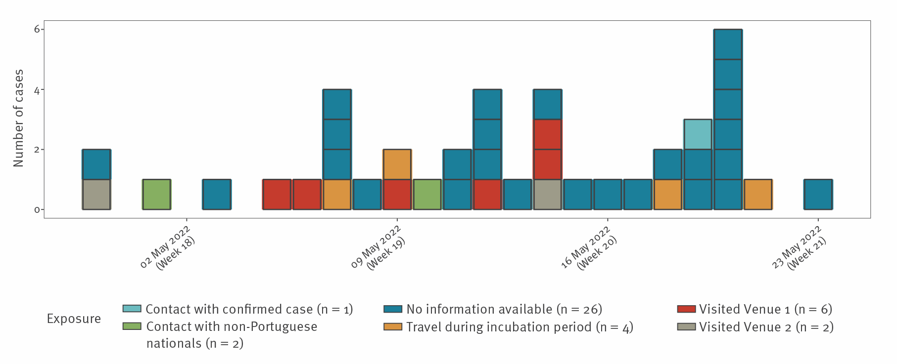 [12] Perez Duque, M. et al. Ongoing monkeypox virus outbreak, Portugal, 29 April to 23 May 2022. Euro Surveill. 27, 2200424 (2022). doi: 10.2807/1560-7917.ES.2022.27.22.2200424 – https://www.eurosurveillance.org/content/10.2807/1560-7917.ES.2022.27.22.2200424