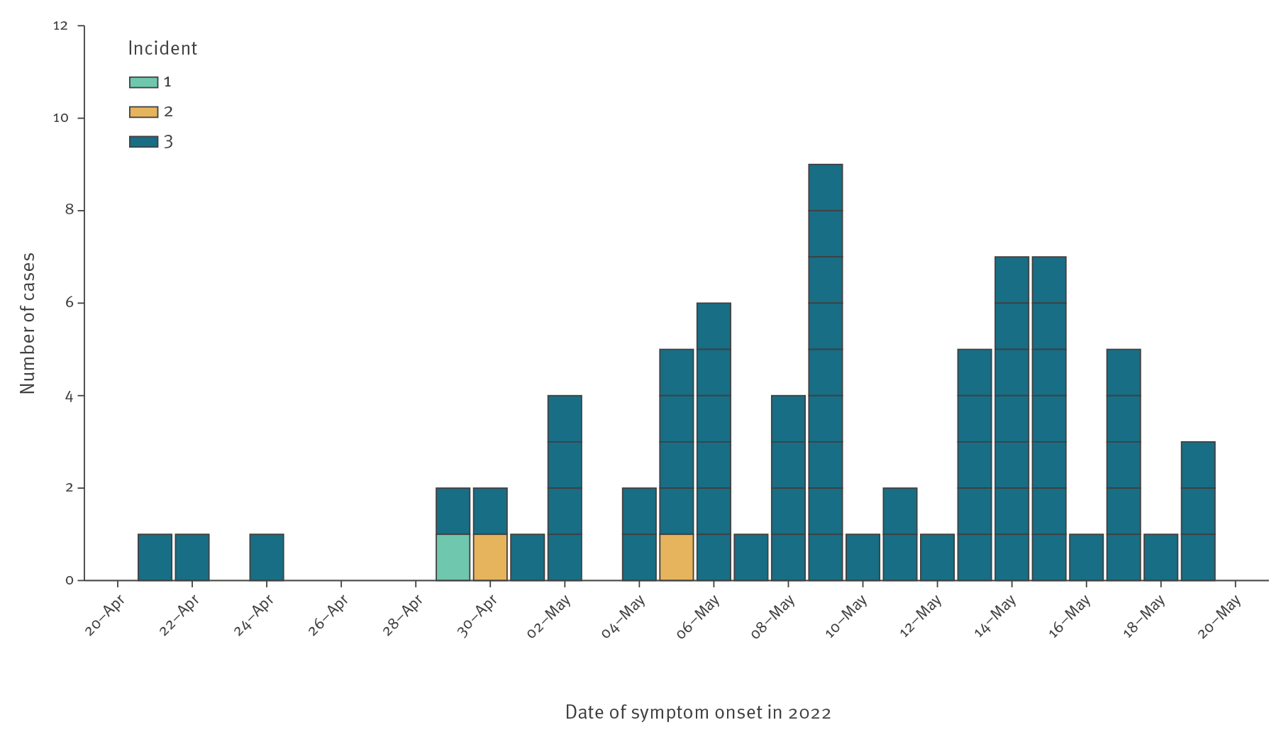 [13] Vivancos, R. et al. Community transmission of monkeypox in the United Kingdom, April to May 2022. Euro Surveill. 27, 2200422 (2022). doi: 10.2807/1560-7917.ES.2022.27.22.2200422 – https://www.eurosurveillance.org/content/10.2807/1560-7917.ES.2022.27.22.2200422